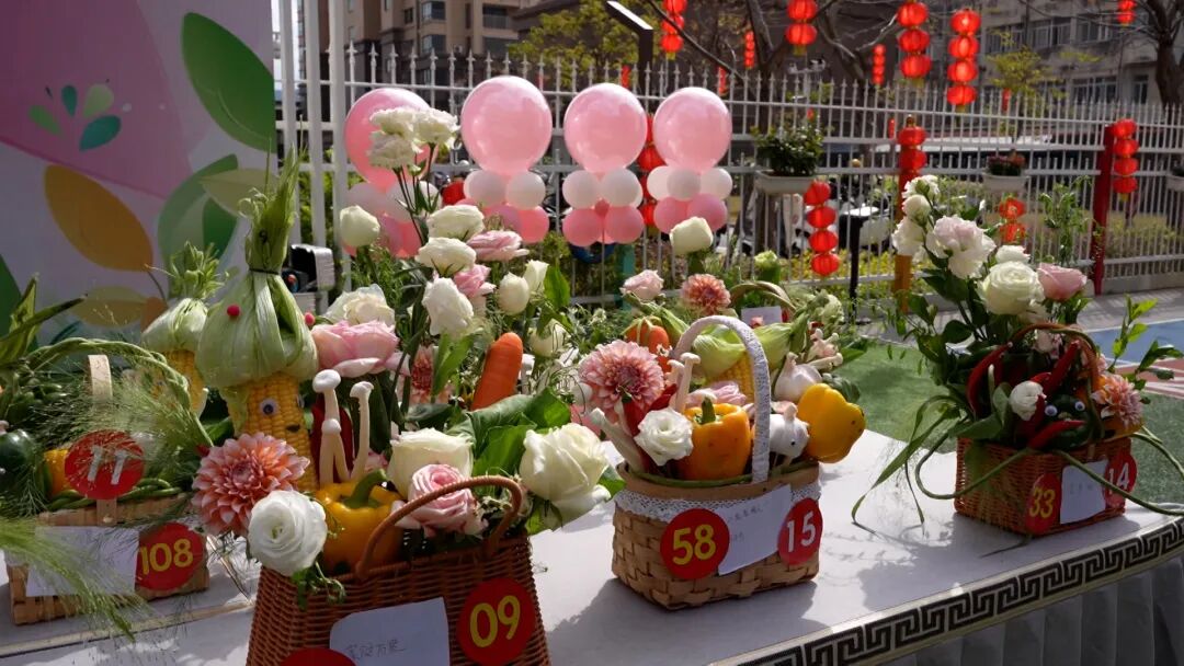 在作品展示与评选环节。一件件风格独特、创意十足的插花作品被集中陈列,宛如一场小型花卉艺术展。每一件作品都凝聚着巧思与匠心,展现了女教职工在讲台之外的别样才华与生活情趣。